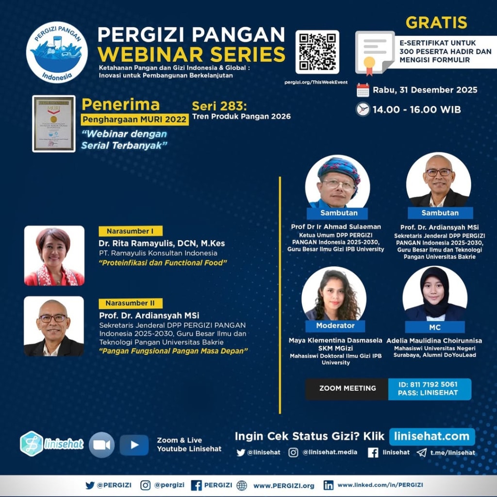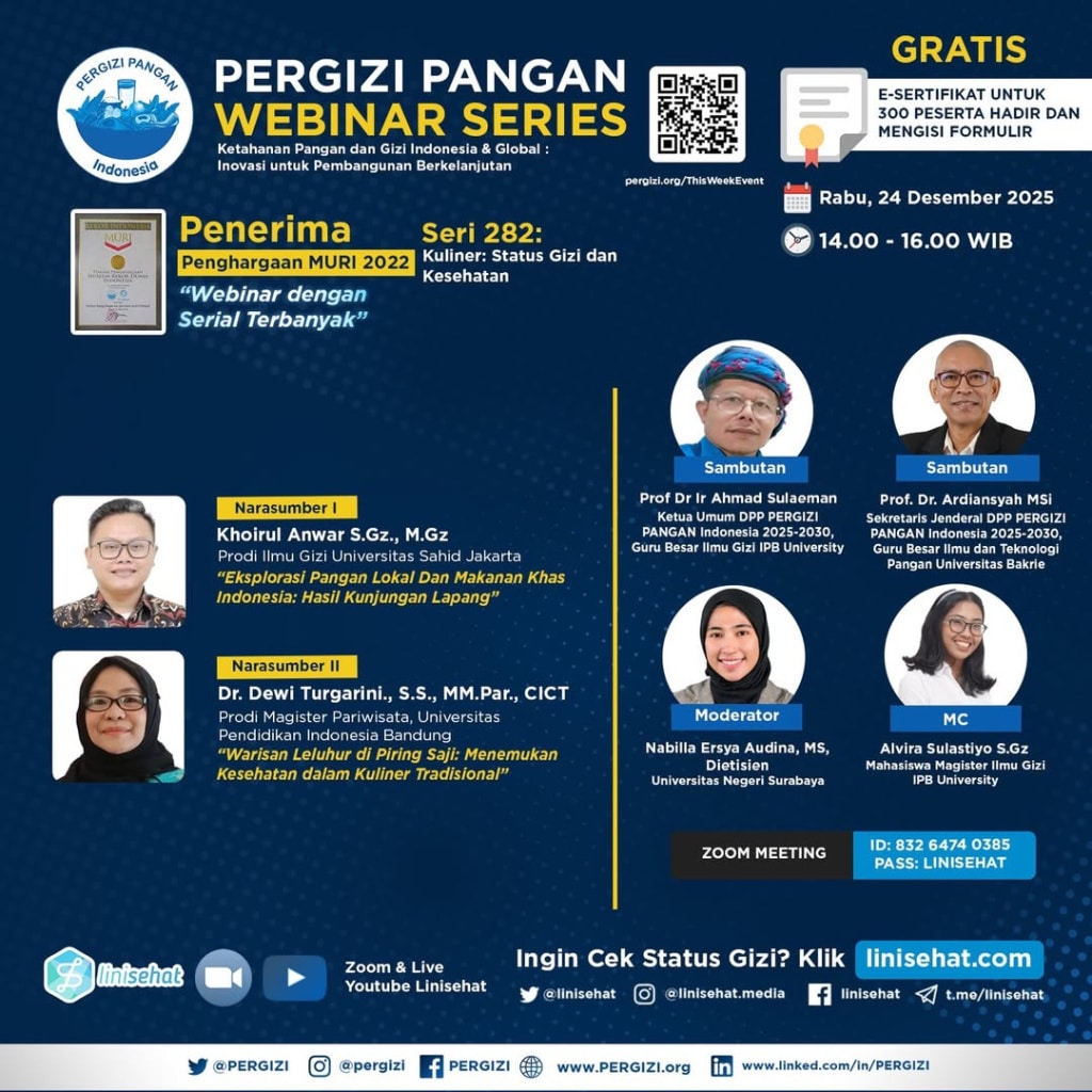 PERGIZI PANGAN Webinar Series 282 Tema: Kuliner: Status Gizi dan Kesehatan ???? Rabu, 24 Desember 2025 ???? Pukul 14.00 - Read more