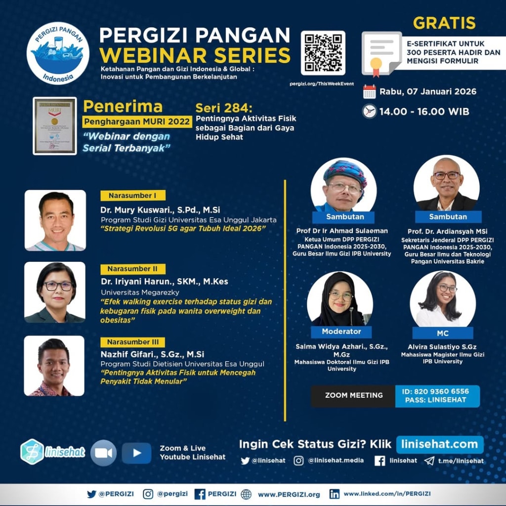 PERGIZI PANGAN Webinar Series 284 Tema: Pentingnya Aktivitas Fisik sebagai Bagian dari Gaya Hidup Sehat ???? Rabu, 07 Januari 2026 Read more