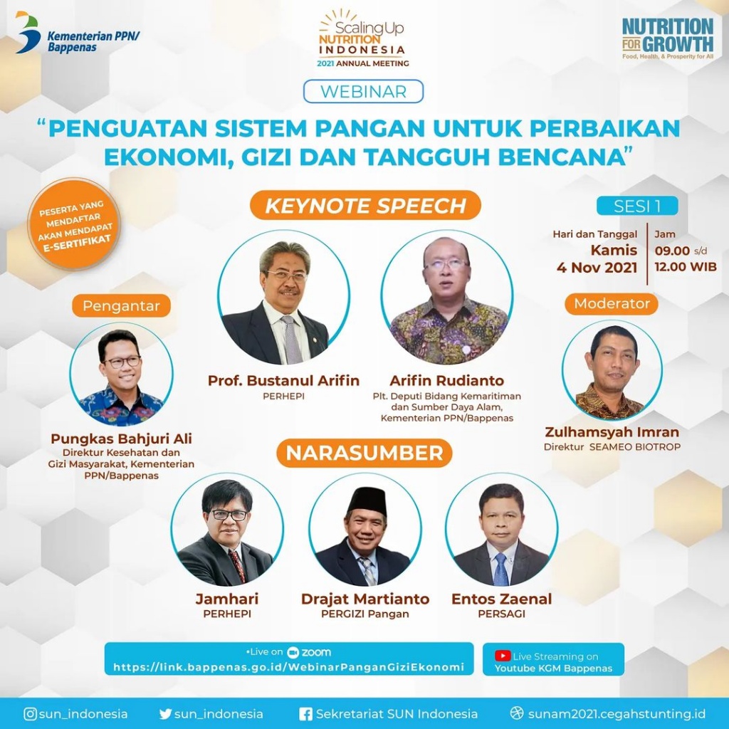Webinar "Penguatan Sistem Pangan untuk Perbaikan Ekonomi, Gizi, dan Tangguh Bencana" ? Kamis, 4 November 2021 ⏰ 09.00 - Read more