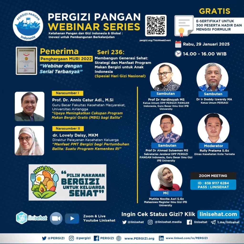 PERGIZI PANGAN Webinar Series 236 Tema: Membangun Generasi Sehat: Strategi dan Manfaat Program Makan Bergizi untuk Anak Indonesia ????️ Rabu, Read more