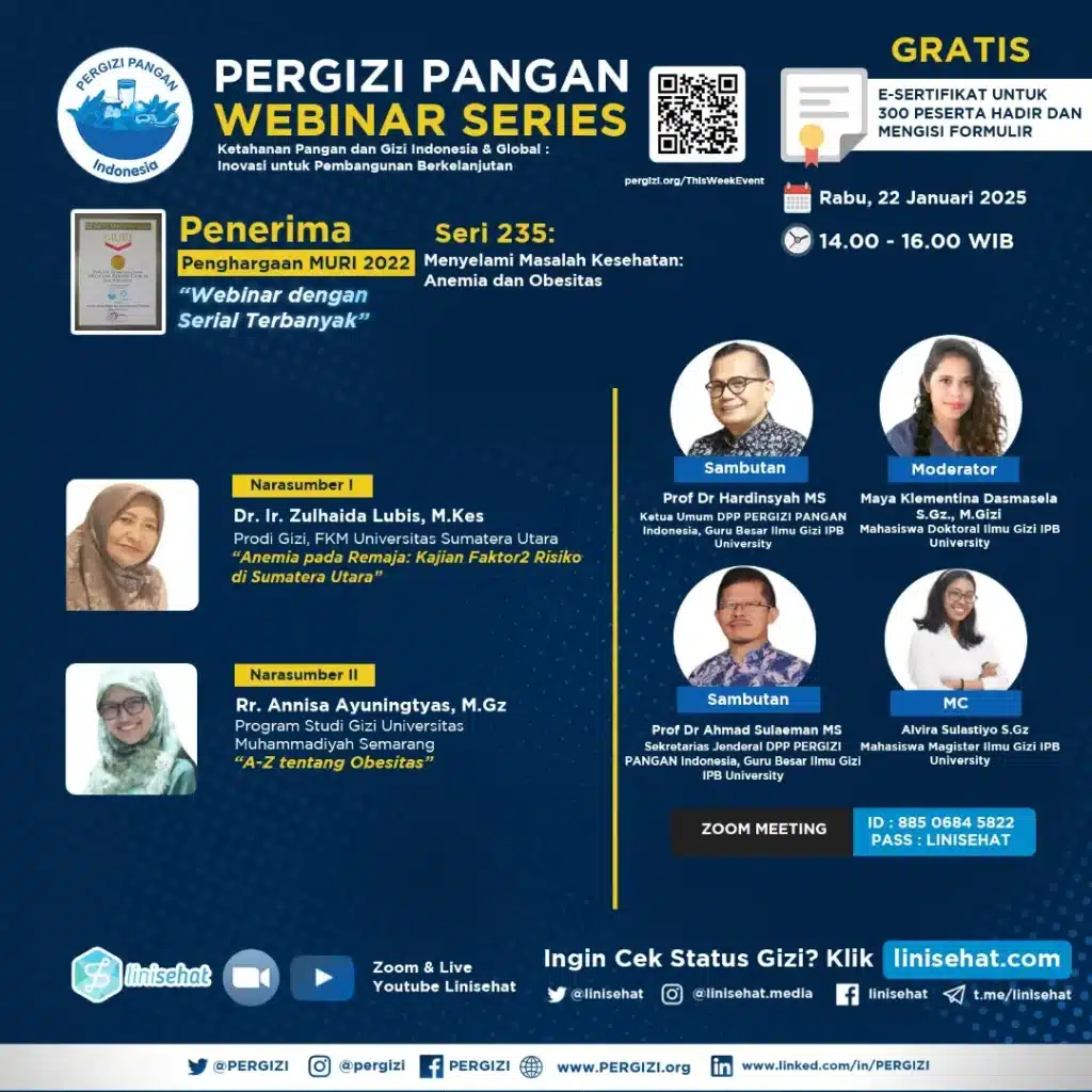PERGIZI PANGAN Webinar Series 235 Tema: Menyelami Masalah Kesehatan: Anemia dan Obesitas ????️ Rabu, 22 Januari 2025 ???? Pukul 14.00 Read more