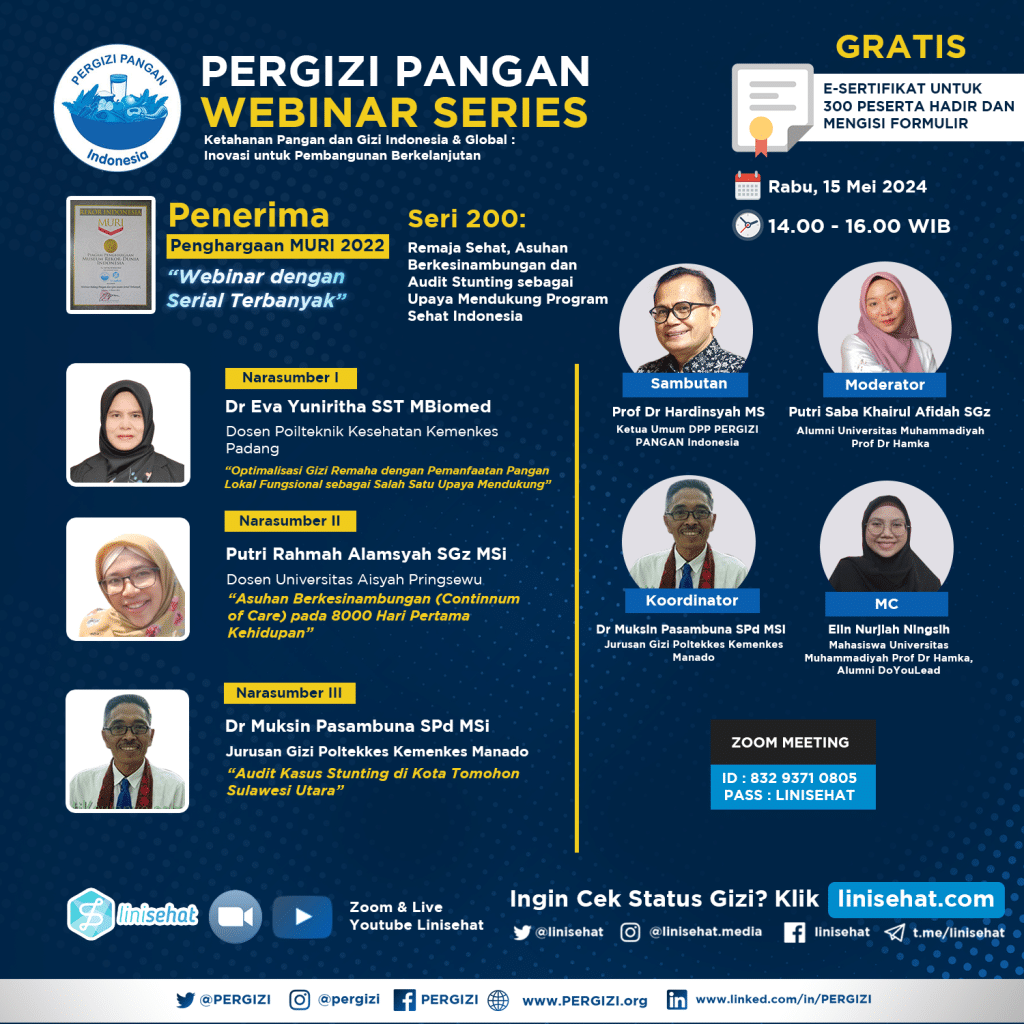 PERGIZI PANGAN Webinar Series 200 Tema: Remaja Sehat, Asuhan Berkesinambungan dan Audit Stunting sebagai Upaya Mendukung Program Sehat Indonesia Read more