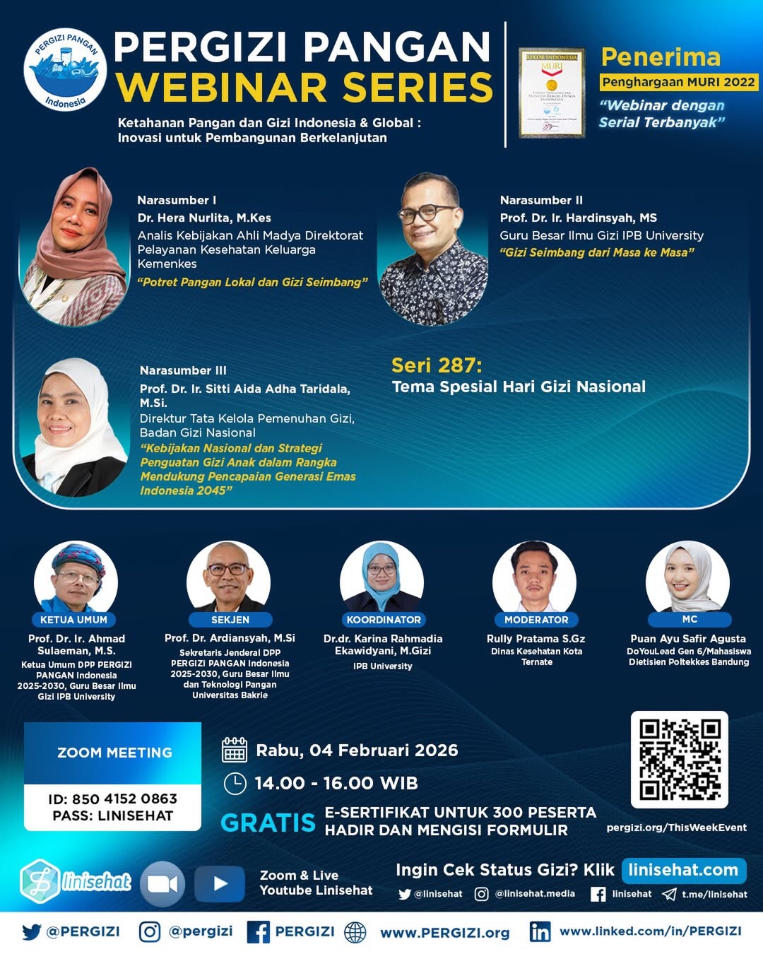 1. Prof Dr Ir Ahmad Sulaeman MS (Ketua Umum DPP PERGIZI PANGAN Indonesia 2025-2030, Guru Besar Ilmu Gizi IPB University)
